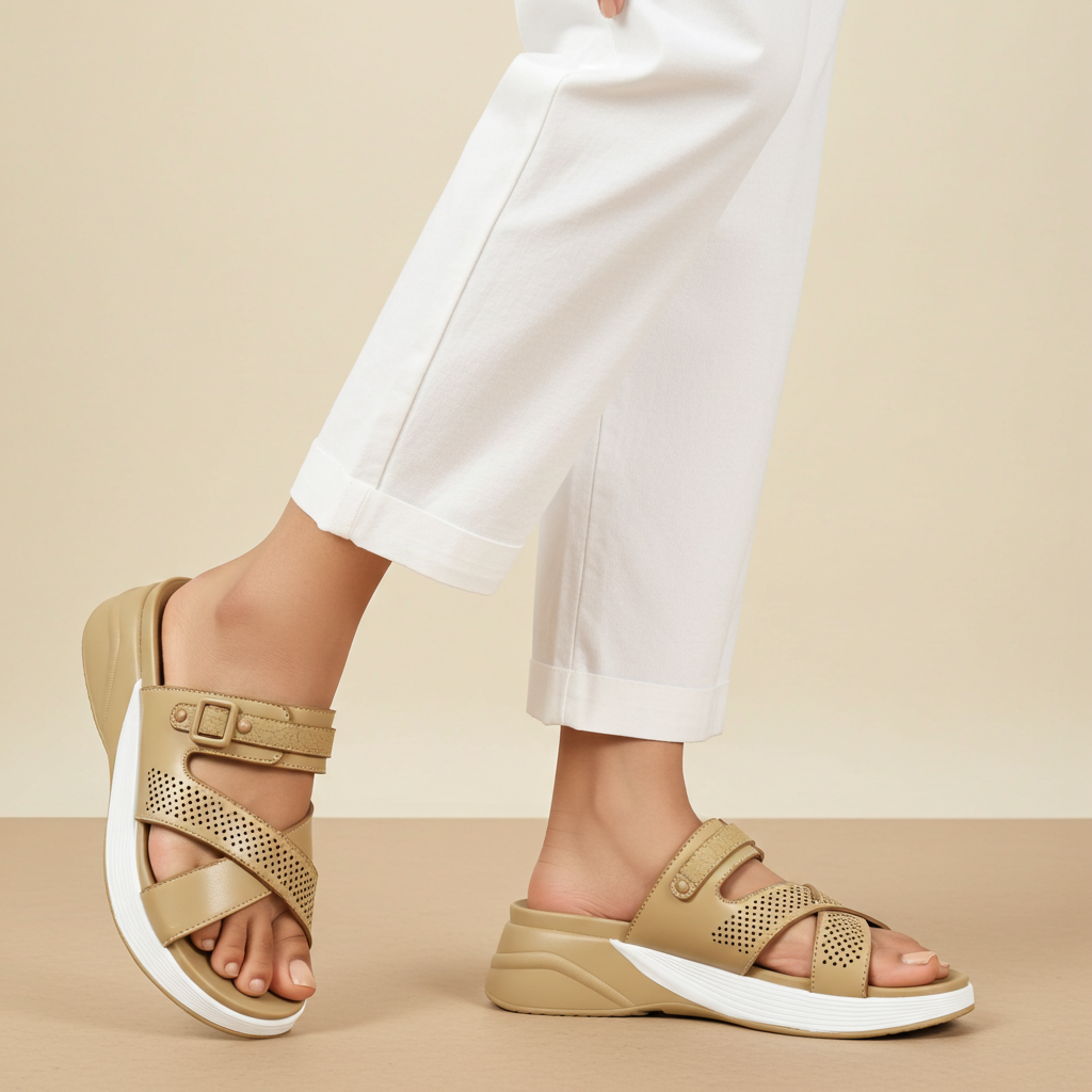 Step into luxury and comfort with these premium-quality dark beige comfort slides! Perfect for everyday wear, these Soft slides for women are designed to give you effortless style and ultimate ease. Made with high-quality synthetic leather for a soft and durable feel, they feature a smooth finish that looks elegant and classy. The sparkling rhinestone buckle adds an elegant touch, making them perfect for casual outings, homewear, or quick errands.